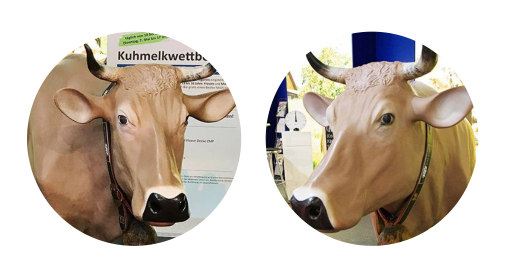 Für Veranstaltungen, Messen oder private Anlässe vermieten wir zwei melkbare Kunststoff-Kühe, beide braun. Soll es Jaqueline oder Simona sein?